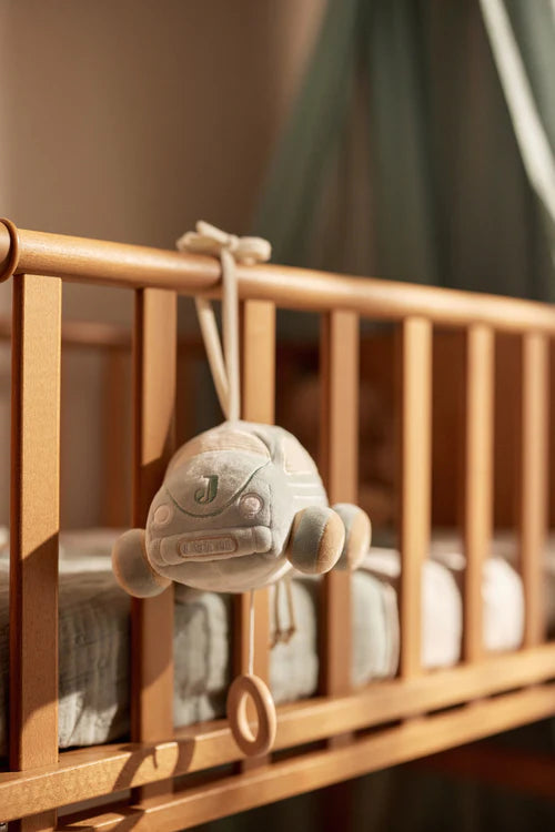 Faites rêver votre petit avec notre adorable mobile musical On the Go en forme de petite voiture. Cette douce voiture de couleur Sea Green est dotée de roues couleur biscuit et de fenêtres en tissu côtelé ! En tirant sur le cordon, votre tout-petit entendra la douce mélodie de Lullaby. Ce mobile musical est le compagnon parfait pour bercer votre bébé et l’aider à s’endormir, entouré de douceur et enchanté par les notes apaisantes de cette belle mélodie !